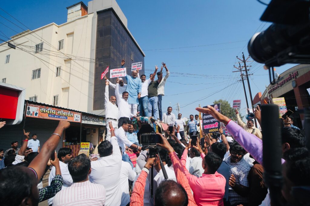 तासगाव, मंगळवार दिनांक – 14 ऑक्टॉबर 2025 (महाराष्ट्र मराठी न्यूज वृत्तसेवा) निसर्गाचा लहरीपणा आणि सरकारी धोरण यामुळेच शेतकरी कर्जबाजारी झालाय. त्यामुळे शेतकऱ्यांची कर्जमुक्ती करणारी सरकारची जबाबदारी आहे. बळीराजाच्या सामान्य जनतेच्या बाजूने बोलणारा आवाज क्षीण झालाय. या जगाचा पोशिंदा असणाऱ्या शेतकऱ्यांच्या सर्वसामान्यांच्या प्रश्नाला वाचा फोडल्याशिवाय हा संजय पाटील गप्प बसणार नाही. अशी भीमगर्जना मा. खासदार संजय काका पाटील यांनी केली. शेतकरी कर्जमाफी या प्रमुख मुद्द्यासह शेतकऱ्यांच्या प्रमुख मागण्यासाठी तासगाव येथे आयोजित चक्काजाम आंदोलनाला अभूतपूर्व प्रतिसाद मिळाला. आपल्या शेळ्या मेंढ्या व पाळीव जनावरा सह आलेले हजारोंच्या संख्येने आलेले शेतकरी शेकडो ट्रॅक्टर, यामुळे शहर व ग्रामीण भागातून येणारे रस्ते पूर्णपणे ब्लॉक झाले होते. प्रचंड मोठी वाहतूक कोंडी झाल्याचे चित्र दिसून येत होते. या चक्काजाम आंदोलनावेळी बोलताना मा.खासदार संजय काका पाटील म्हणाले, इथं आलेले सर्वजण आपण शेतकऱ्यांची मुल आहोत. या जगात प्रत्येक जण स्वतःसाठी जगतोय त्यासाठी कष्ट करतोय पण शेतकरी मातीत घाम गाळून स्वतःबरोबरच जगाला ही जगवतोय पण आज या जगाच्या पोशिंदाचं जगणं अवघड झाले. गेल्या चार-पाच वर्षात निसर्गाच्या लहरीपणा आपण अनुभवतोय कधी नव्हे एवढा पाऊस पडतोय, ऑक्टोबर महिन्यात संपत आला तरी रानातलं पाणी संपेना आणि आमच्या शेतकऱ्याच्या डोळ्यातले अश्रू ही थांबेनात ही वस्तुस्थिती आहे. यावर्षी नुकसान झाले पुढच्या वर्षी चांगलं काहीतरी होईल म्हणून शेतकरी बँकेतून कर्ज काढतोय ते पैसे परत नाहीत पतसंस्था खाजगी सावकार यांच्या दारात जातोय. शेतीतून मिळणारे उत्पन्न आणि खर्च याचा मेळ लागत नाही त्यामुळे कर्जाचे दुष्टचक्र संपत नाही. या सगळ्यातून शेतकऱ्याला बाहेर काढायचं असेल तर मायबाप सरकारने कर्जमाफी करणे हाच त्यावरचा एक मात्र उपाय आहे. आणि त्यासाठी शेतकऱ्याच्या खांद्याला खांदा लावून नवे तर त्याच्यापुढे एक पाऊल राहून लढायची भूमिका मी आज जाहीर करत आहे तुम्ही सगळेजण इथे आलाय ते तुमचा माझ्यावर विश्वास आहे म्हणून हा विश्वास ढळू देणार नसल्याची ग्वाही यावेळी संजय काका पाटील यांनी दिली. मोर्चासमोर बोलताना युवा नेते प्रभाकर बाबा पाटील म्हणाले, मी स्वतः शेतकरी आहे. माझी द्राक्षाची बाग परवडना म्हणून मी आंब्याची बाग लावली. पण द्राक्ष बरी होती का काय अस आता वाटायला लागले आहे. द्राक्षाची बाग असताना आणि आताही शेतात केलेल्या खर्चाचा हिशोब ठेवत नाही कारण हिशोब बघायला लागलं की डोकं काम करत नाही. शेती परवडत नाही हे समोर डोळ्याला दिसते. माझ्या समोर काही पर्याय आहेत पण इथे बसलेल्याच नव्हे तर 90% ल