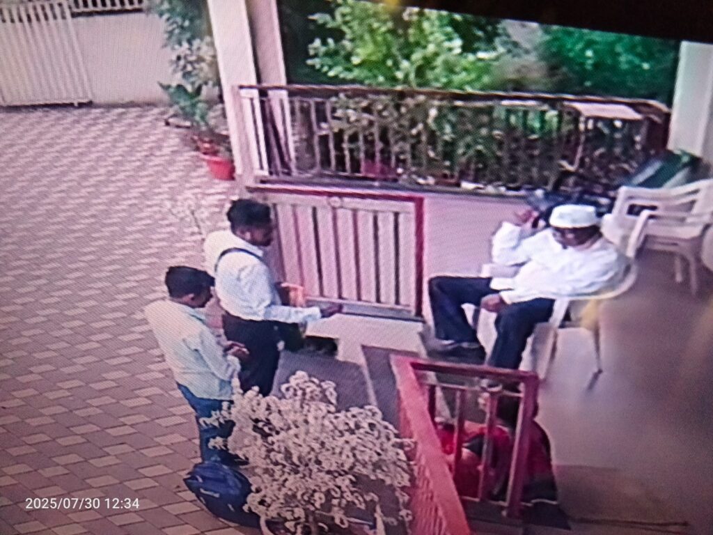 तासगाव, (बुधवार दिनांक – 30 जुलै 2025, महाराष्ट्र मराठी न्यूज वृत्तसेवा) तासगाव तालुक्यातील कवठेएकंद येथे नांद्रे रोड वरील पाण्याच्या टाकी जवळ तासगाव पंचायत समितीचे माजी उपसभापती यांच्या ‘नारायण’ या निवास्थानी राहत असलेले त्यांचे वडील बाबुराव माळी व आई ताराबाई माळी यांना बुधवारी सकाळी साडे दहा च्या सुमारास दोन अज्ञात चोरटयानी तांबे, पितळ भांडी व सोन्या-चांदीचे दागिने पॉलिश करण्याच्या बहाण्याने साडेचार तोळ्याचे सोन्याचे दागिने लंपास केले. या घटनेची तासगाव पोलीस ठाण्यात नोंद झाली असून अज्ञात दोन चोरट्यांच्या विरोधात गुन्हा दाखल झाला आहे. यामुळे परिसरात एकच खळबळ उडाली आहे. याबाबत तासगाव पोलिसांकडून मिळालेली माहिती अशी की, कवठेएकंद येथील नांद्रे रोड वरील पाण्याची टाकीजवळ पंचायत समितीचे माजी उपसभापती जयवंत माळी यांचे ‘नारायण’ या नावाचे निवासस्थान आहे. या राहत्या घरी त्यांची आई व वडील हे दोघेच वृद्ध दांपत्य राहत आहेत. बुधवारी सकाळी साडेदहाच्या सुमारास त्यांच्या घरी दोन अज्ञात 25 ते 30 या वयोगटातील इनशर्ट केलेले युवक तांबे पितळ भांडी व इतर धातूची वस्तू पॉलिश करण्याच्या बहाण्याने आले. सुरुवातीला या भामट्यानी घराच्या व्हऱ्यांड्यात कट्ट्यावरती तांब्या व पितळेची भांडी स्वच्छ पॉलीस करून त्यांचा विश्वास संपादन केला. त्यानंतर सोन्याची दागिने पॉलिश करण्याच्या निमित्ताने दागिन्याची मागणी केली. यावेळी ताराबाई माळी यांनी त्यांचे साडेचार तोळ्याचे गंठण भामट्यांच्या हातात दिले. त्यांनी पॉलिश करण्याच्या बहाण्याने एका कपड्यात दागिने गुंडाळे. त्यानंतर एका भांड्यात पाणी घेऊन त्यात हळद टाकून दागिने त्यात टाकल्याचा बहाना केला. हे भांडे गॅस वरती पंधरा मिनिटे तापत ठेवण्यास सांगितले. एका भामट्याने स्वतः हे भांडे घरामध्ये आत मध्ये जाऊन गॅस वरती ठेवल्याचे सीसी टीव्ही कॅमेऱ्यात कैद झाले आहे. त्यानंतर किमान 15 मिनिटानंतर ते भांडे खाली उतरून घ्या असे सांगून दोघे भामटे तेथून पसार झाले. त्यांची ही चलाकी बाबुराव माळी यांच्या लक्षात आल्यानंतर त्यांनी त्यांच्या पत्नीस गॅस वरती तापत ठेवलेल्या भांड्यात दागिने असल्याची खात्री करण्यास सांगितले. ताराबाई माळी यांनी तात्काळ घरामध्ये जाऊन खात्री केली असता, गॅसवरील भांड्यात दागिने नसल्याचे निदर्शनास आले. त्यानंतर त्यांनी धावाधाव केली तोपर्यंत भामटे तिथून पसार झाले होते. याचे वृत्त तासगाव पोलीस ठाण्यात समजतात घटनास्थळी सहाय्यक पोलीस निरीक्षक दीपक पाटील यांनी धाव घेतली. सांगलीहून स्थानिक गुन्हे शाखा अन्वेषण विभाग, ठसे तज्ञ यांचे पथक घटनास्थळी दाखल झाले. याबाबत ताराबाई बाबुराव माळी यांनी तासगाव पोलीस ठाण्यात दिल